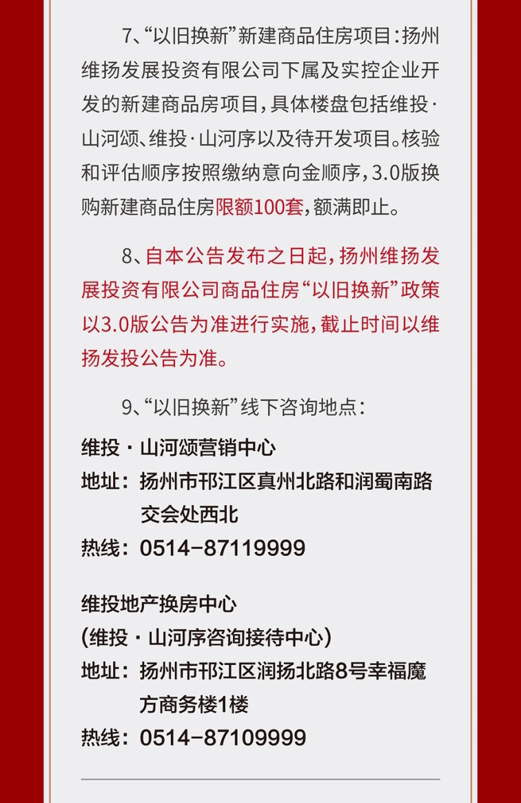活動(dòng)現(xiàn)場(chǎng),不少客戶對(duì)以舊換新政策表現(xiàn)出濃厚的興趣,工作人員耐心為大家講解政策細(xì)則和辦理流程,整個(gè)操作簡(jiǎn)便快捷,購(gòu)房者只需通過(guò)線上報(bào)名,按照指引即可輕松操作,3.0版換購(gòu)新建商品住房限額100套,換購(gòu)人可通過(guò)登錄“維揚(yáng)發(fā)投商品住房‘以舊換新’線上報(bào)名系統(tǒng)”報(bào)名,具體要求詳見(jiàn)公告。在政策的加持下,維投·山河序的熱度持續(xù)攀升,爆款之勢(shì)已然成型。